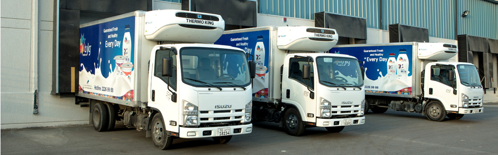 إن الحليب واللبن والروب والعصائر تأتينا من اتحاد يضمّ عدداً من مالكي مزارع الأبقار الكويتية الذين يملكون أيضاً مصنع شركة الصفاة الواقع في مكان استراتيجي بين طريق الدائري السادس وطريق الدائري السابع بجانب المزارع لضمان توصيل المنتجات فوراً وبذلك نتأكّد من حصول المستهلك على منتجات طازجة يومياً. |
